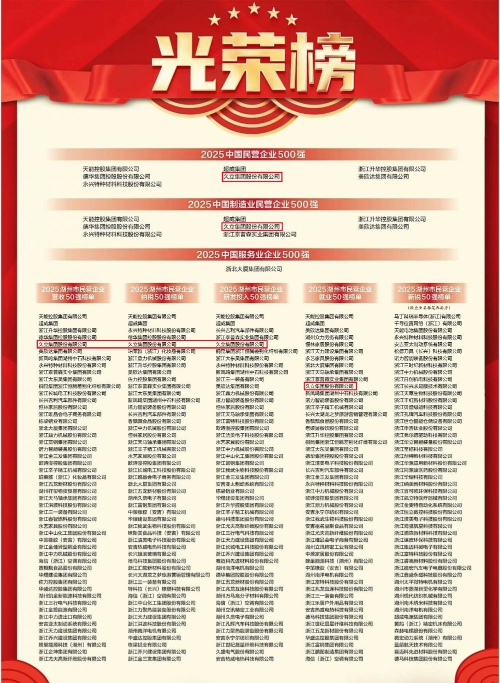 2025湖州民營企業(yè)家節(jié) | 久立榮獲多項(xiàng)榮譽(yù)!